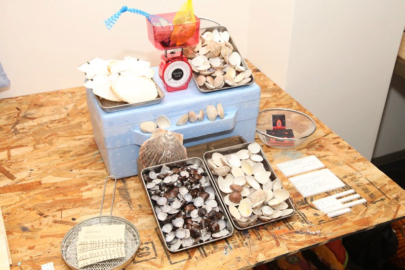 今回はいつもとは違う観点の作品で、おもしろい〜!本物のホタテ、アサリ、シジミの貝の量り売りキャンドルです。