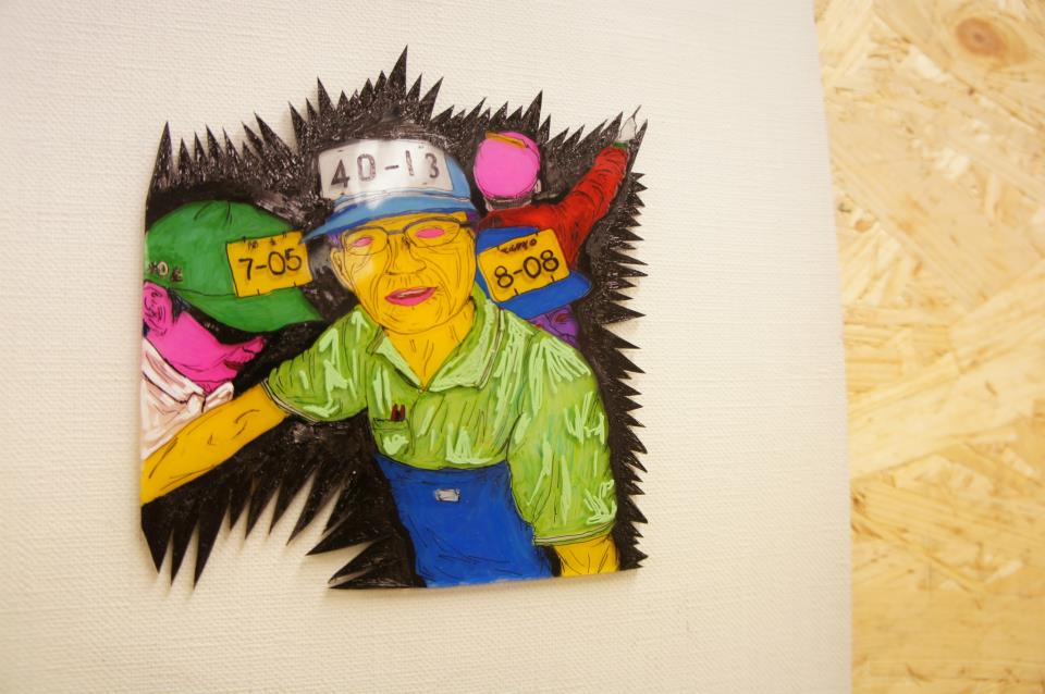 築地で働く人達をモチーフにした精巧なプラバンアート。