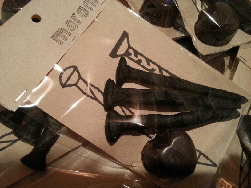 ハンマーでハートを叩き割る、ハートブレイクなチョコ&クッキー。いわゆる、義理チョコです。