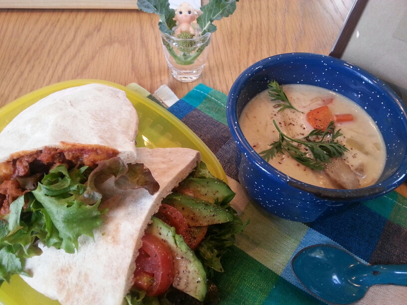 今回は、オーガニック野菜にこだわり、オーガニックピタ&スープsetを提供させていただきました。