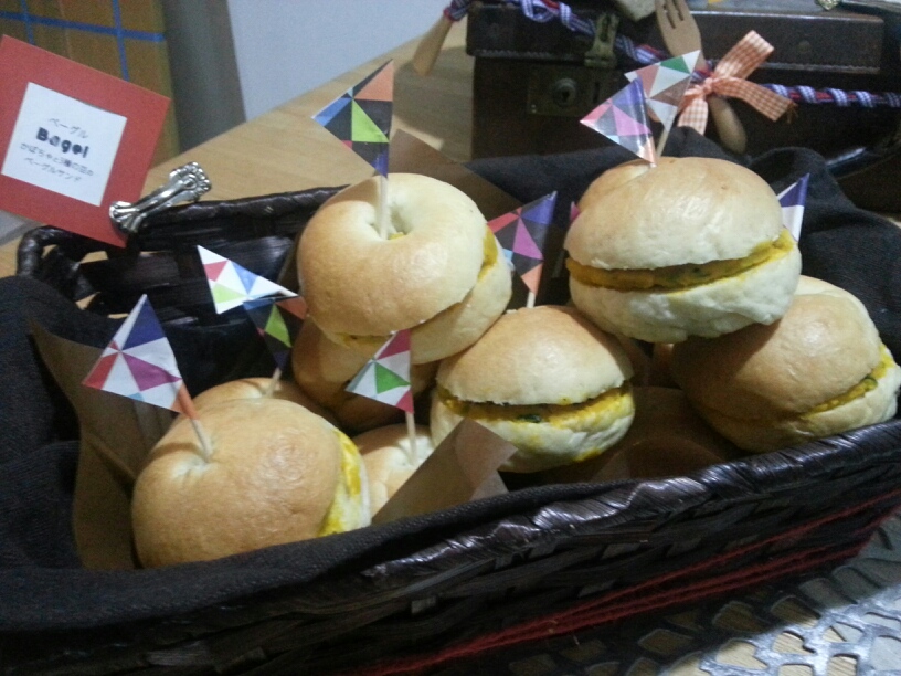 3種お豆とカボチャのプチベーグルサンド